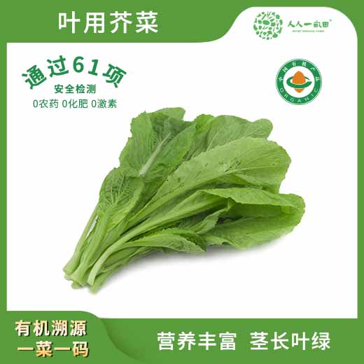 简介: 来自人人一亩田崇明农庄,种植过程严格监测,冷链运输,快捷保鲜。 叶用芥菜又名青菜、苦菜、辣菜、春菜等;可腌制、炒食、做汤、熬粥等;不宜生食或过多食用,婴幼儿不宜食用。