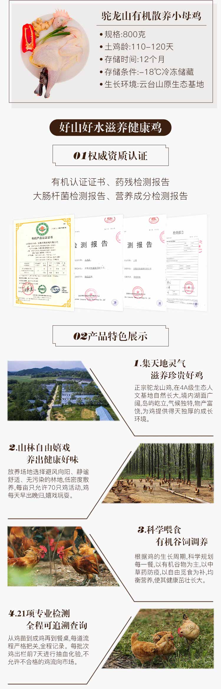 简介: 来自云台山原生态基地,鸡在这里自由长大,小母鸡蛋白质丰富,营养易被人体吸收,经蒸煮之后纤维分离,细嫩松软口感好。