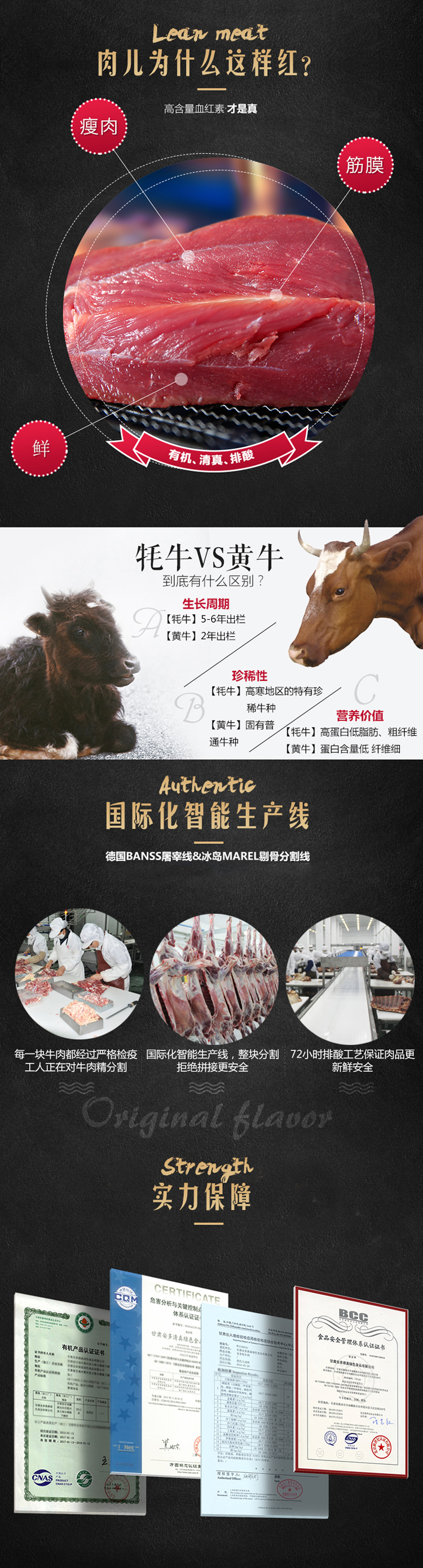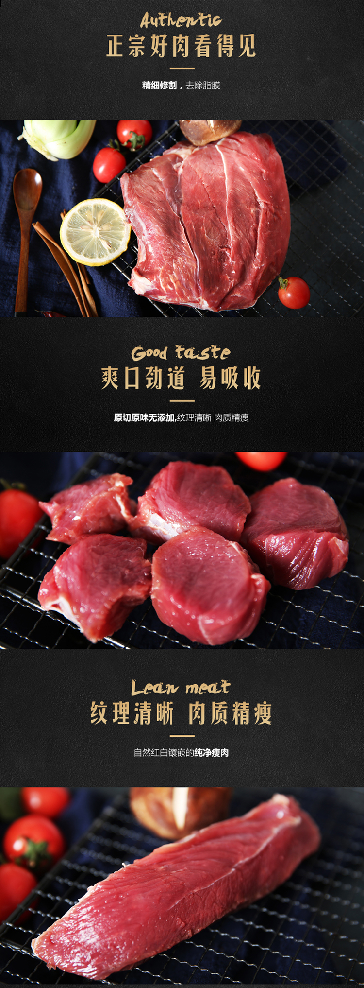 肉质红色,新鲜细腻,肉质紧实,贴体包装。