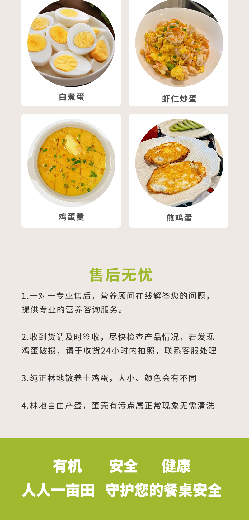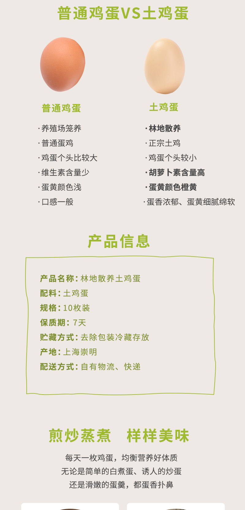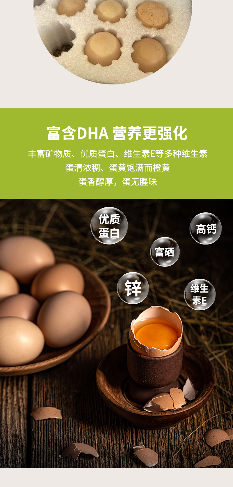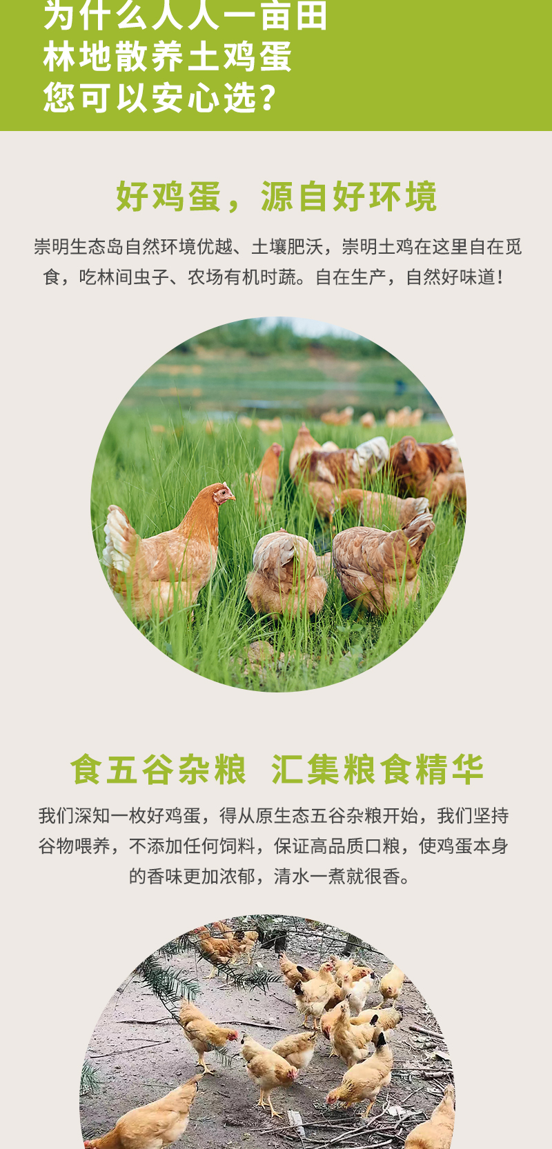 吃自然蔬菜、五谷杂粮长大的鸡下的蛋,质嫩新鲜,无腥味。