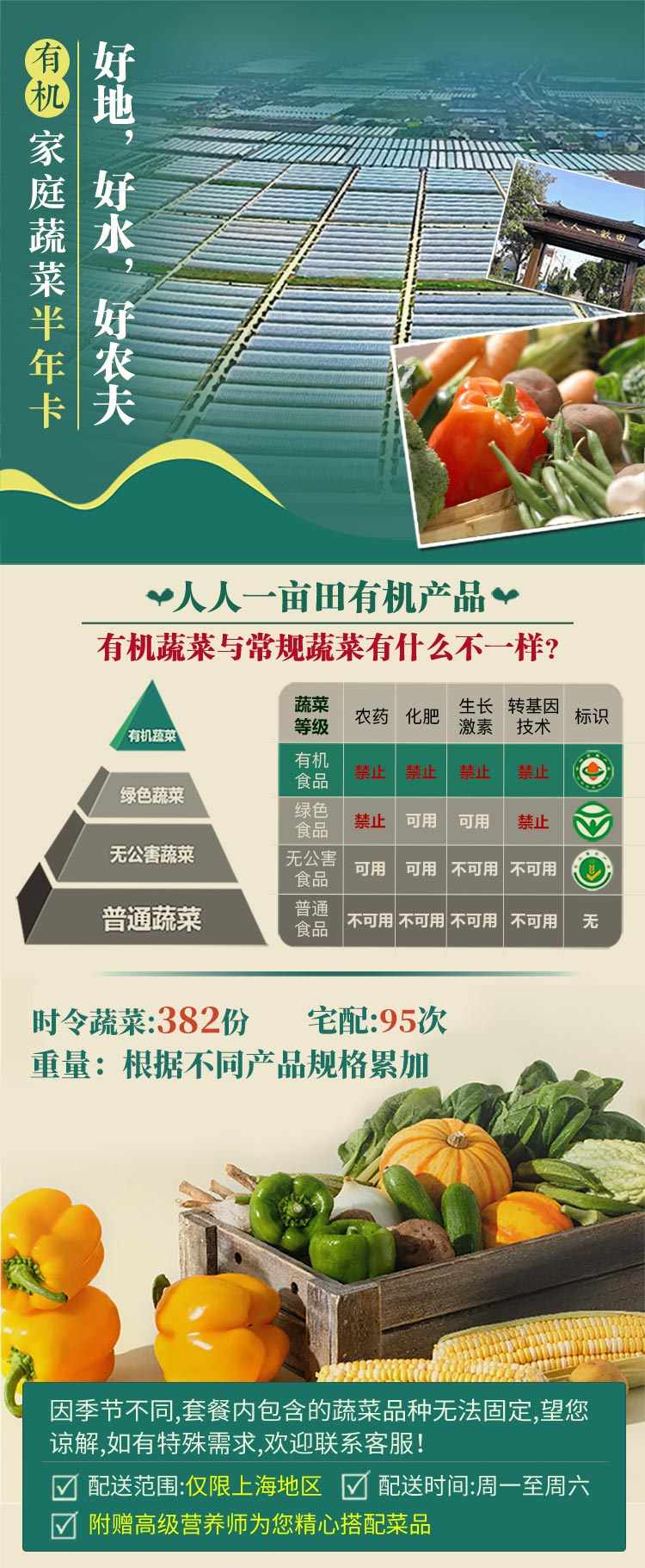 持续12个月种植蔬菜,严格依据GB/T19630.1-2019进行生产的蔬果,并可以按照约定配送到家;享有专业化农业技术服务、生产计划和个性化服务。