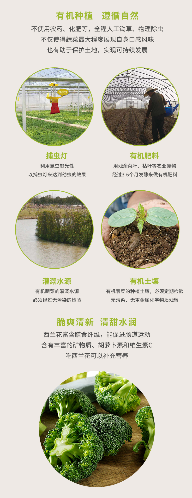 简介: 来自人人一亩田崇明农庄,专注种植,严格监测,冷链运输,快捷保鲜。西兰花富含大量的抗坏血酸,在肝脏的解毒能力方面有很好的增强效果,并能提高机体的免疫力功能。