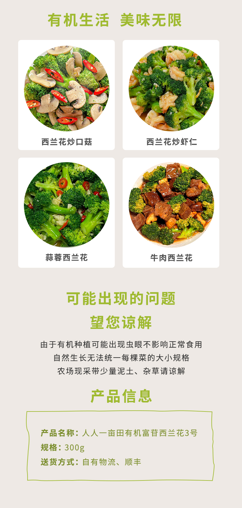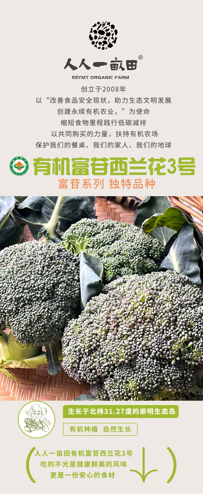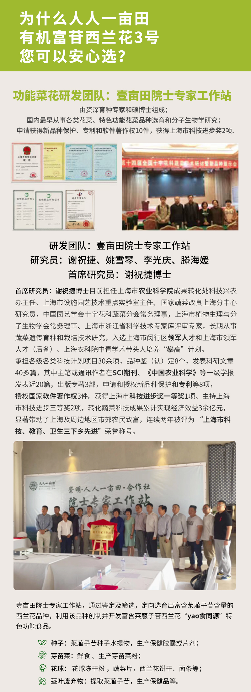 简介: 来自人人一亩田崇明农庄,专注种植,严格监测,冷链运输,快捷保鲜。由人人一亩田科研团队携手上海市农科院培育出的富含莱菔子成分的富苷西兰花,可生食制作沙拉,叶片也可食用。