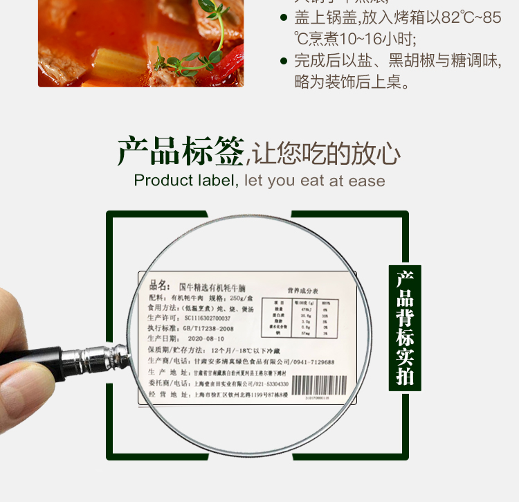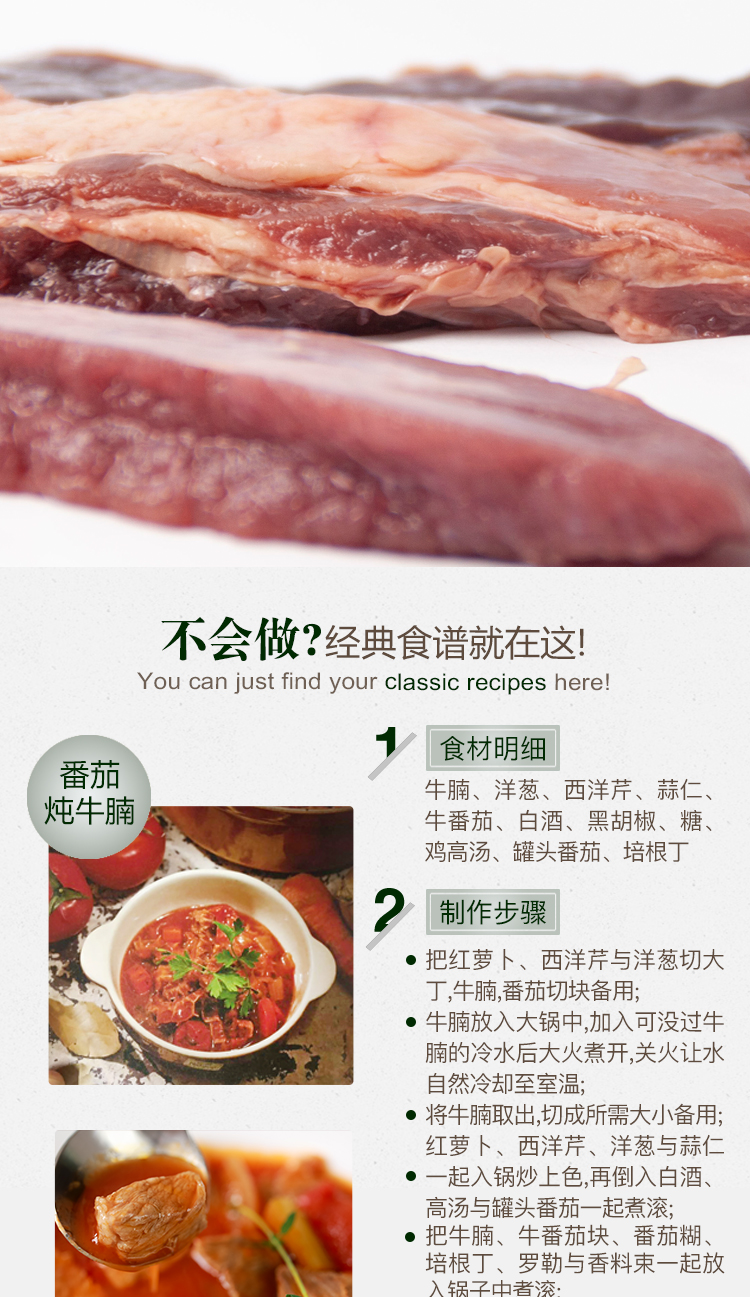 简介: 有机牦牛牛腩250g 买二送一 吃过有机牦牛牛腩,才懂什么叫“肉中黄金”,瘦而不柴,香而不膻,越炖越香,传统放牧,天然草饲,无激素无催肥,煎炒涮均可,烹饪时间较短。慢炖2-3小时,越炖越入味。周末炖一锅红烧牛腩,配碗米饭,幸福感直接拉满!汤品搭档:与胡萝卜、土豆、白萝卜、玉米同炖,营养均衡,一锅满足全家人。