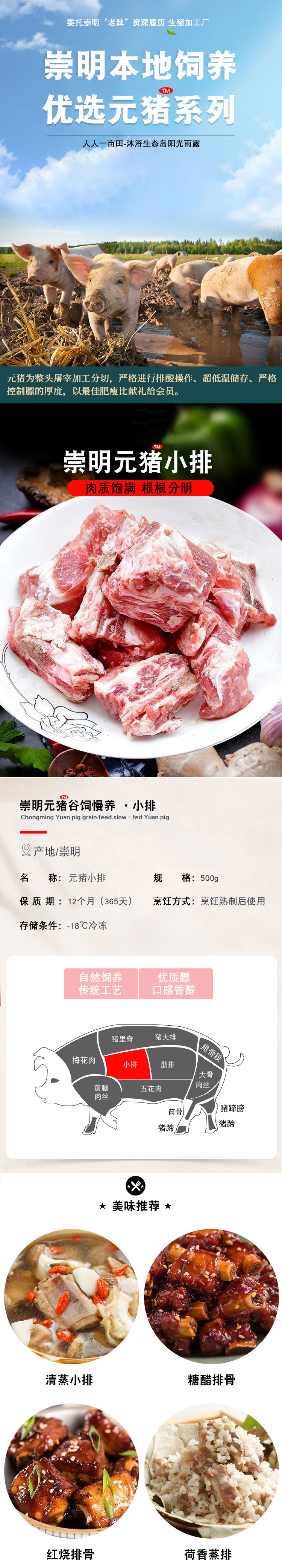 简介: 人人一亩田优选元猪系列,崇明本地饲养。由崇明最老“资格”生猪加工厂操作,分切称量严格控制,高标准好品质。
