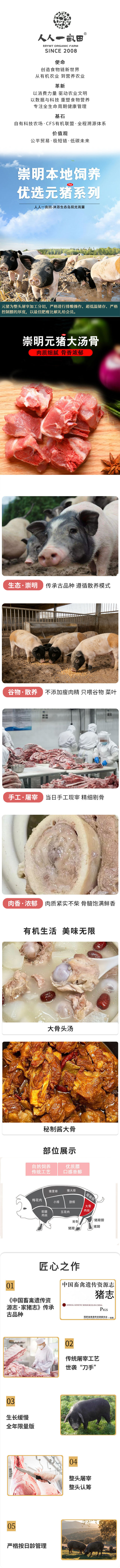 简介: 人人一亩田优选元猪系列,崇明本地饲养。由崇明最老“资格”生猪加工厂操作,分切称量严格控制,高标准好品质。