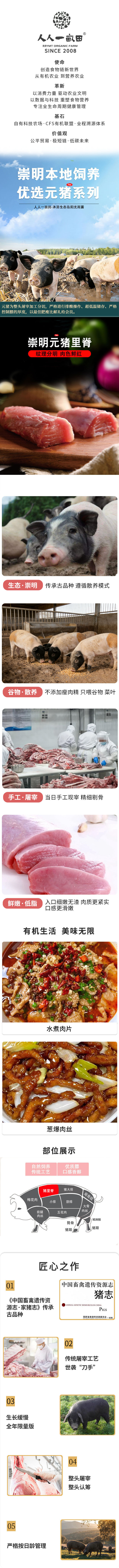 简介: 人人一亩田优选元猪系列,崇明本地饲养。由崇明最老“资格”生猪加工厂操作,分切称量严格控制,高标准好品质。