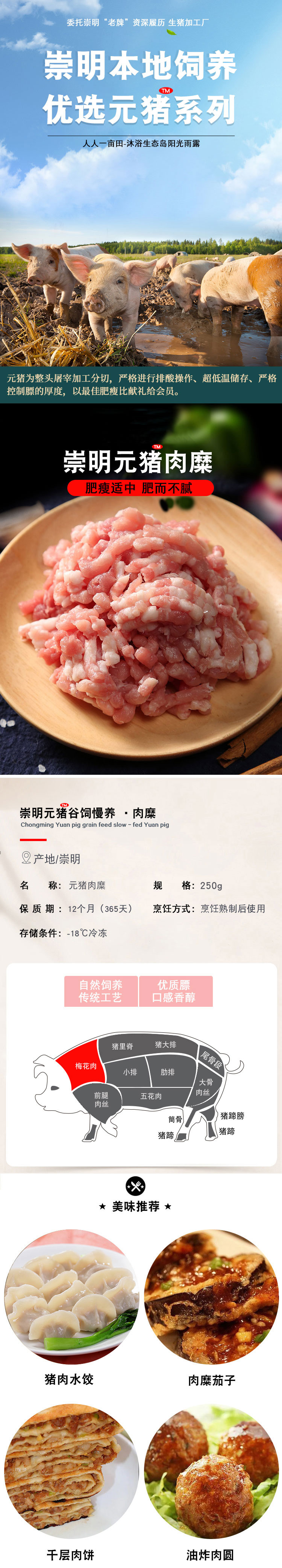 简介: 人人一亩田优选元猪系列,崇明本地饲养。由崇明最老“资格”生猪加工厂操作,分切称量严格控制,高标准好品质。