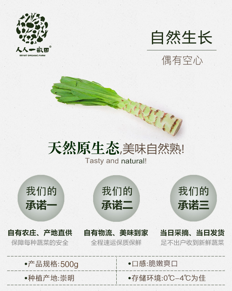 简介: 产地崇明,种植过程严格监测,新鲜采摘,冷链运输,快捷保鲜。富含多种维生素,可清炒、凉拌。