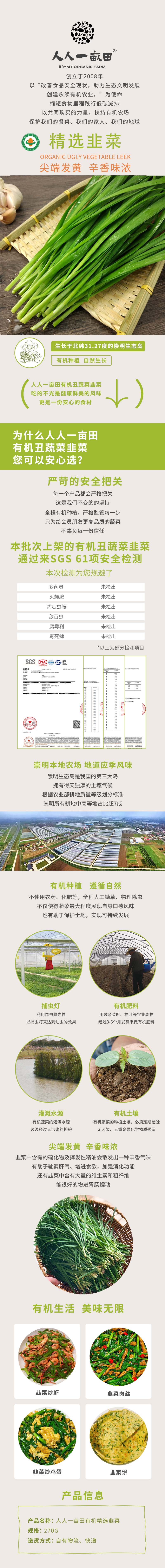 简介: 来自人人一亩田扬州农庄,种植农人:杨师傅,专注种植,严格监测,冷链运输,快捷保鲜。韭菜又称丰本、懒人菜、长生韭、扁菜等;可炒菜、做馅等,不易过多食用。