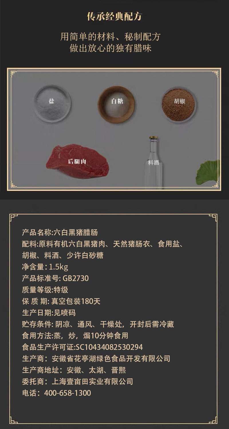 鲜咸口六白黑猪肉糜香肠腊肠(1.5kg)-上海