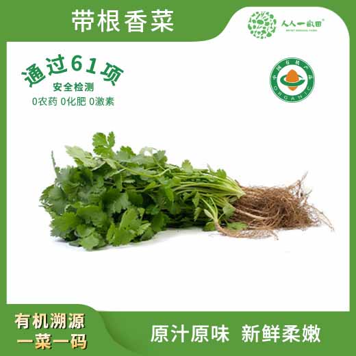此链接拍下为带根香菜,来自崇明人人壹亩田有机农庄