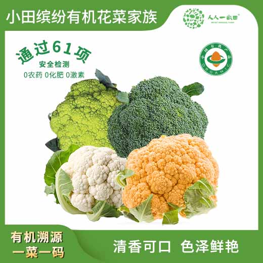 内含小田明星产品缤纷有机花菜家族,4种有机花菜组合,总共重量2kg,会员专享,季节限定