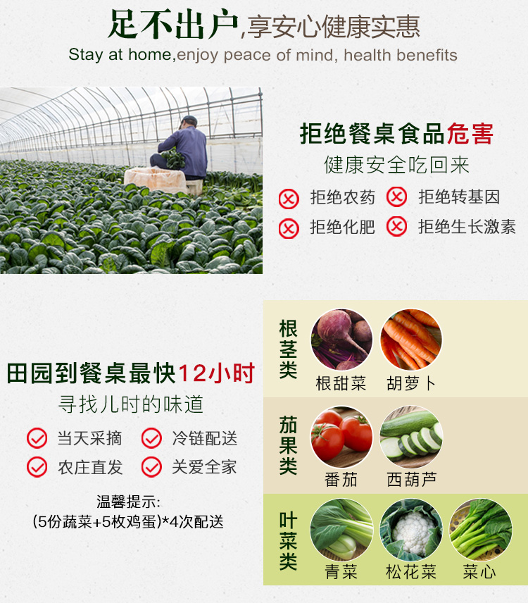 内含20份蔬菜和20枚鸡蛋,丰富多样,足不出户,吃田园新鲜蔬菜吧。