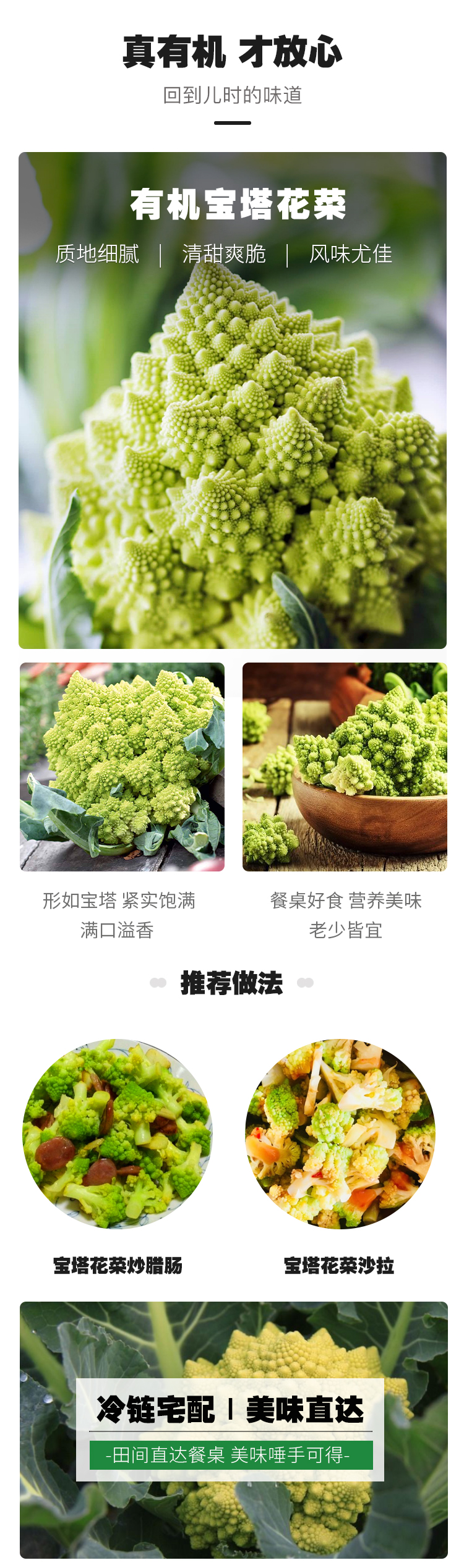 有机宝塔花菜小颗切配装,天然形成神奇的斐波拉契数列,富苷系列,免疫力有Yi,院士专家工作站,自主知识产权保护品种,富含莱菔子苷物质,低GI,肠胃、免疫力有Yi,维生素ABCDE、膳食纤维、矿物质钙元素
