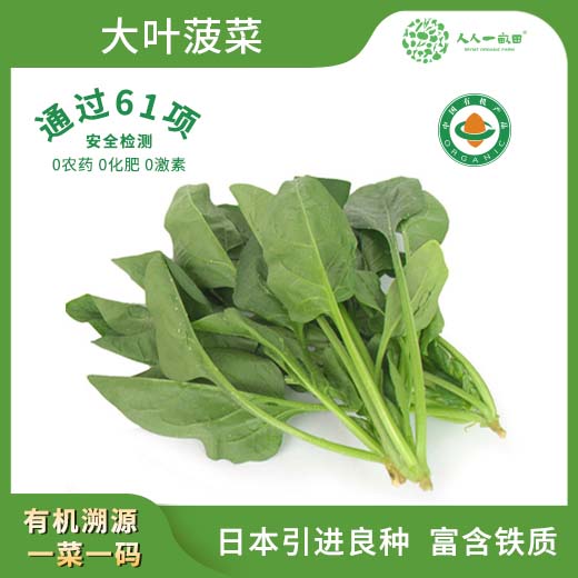 简介: 大叶菠菜是从日本引进的品种,食用方法很多,可炒食、汤食、凉拌、做火锅食材、馅料等。建议食用前,先用开水焯一下,营养更容易吸收。