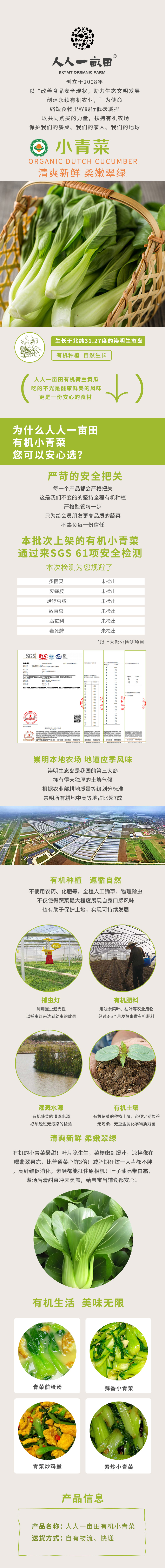 简介: 来自人人一亩田崇明农庄,种植过程严格监测,冷链运输,快捷保鲜。 小青菜又名小白菜,其含丰富的维生素,适宜清炒、煲汤等