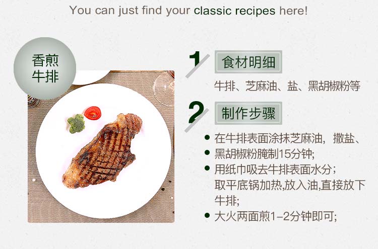 简介: 选自进口谷饲西冷牛排,食用天然的谷物生长,既不需要人工辅助饲料,也不受牲畜疾病威胁,从而能产出高品质、高营养、无有害残留物的优质牛肉。