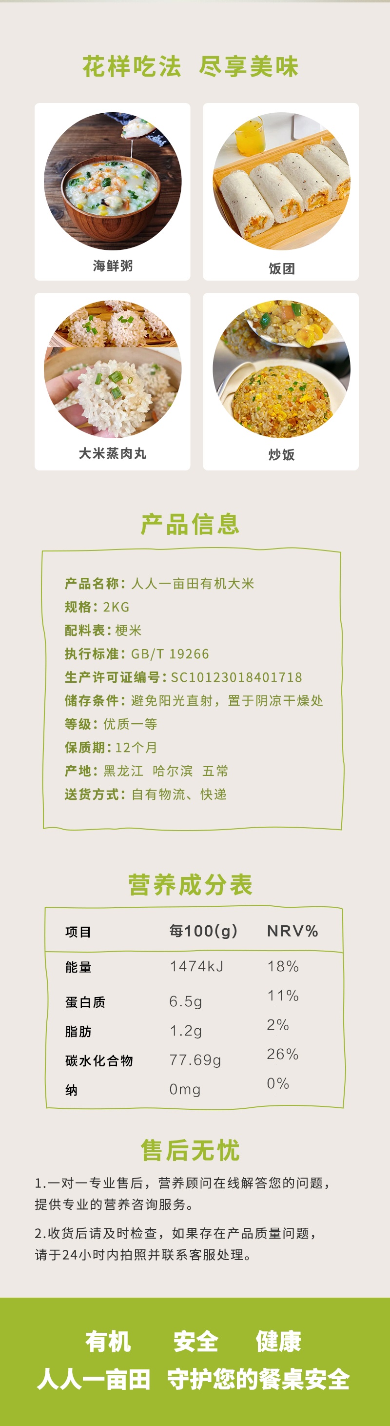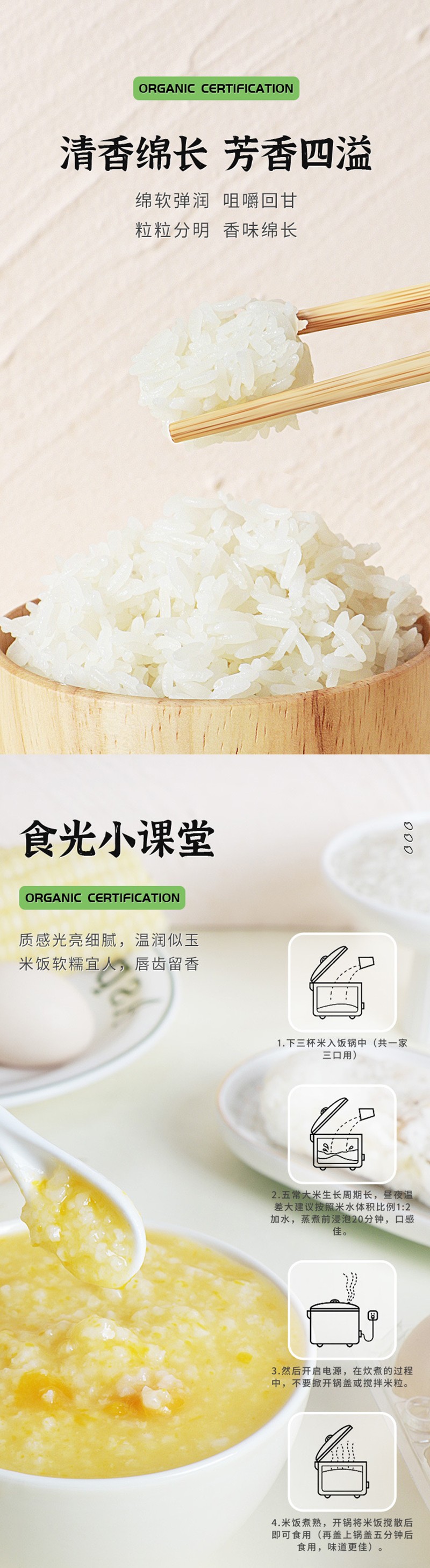简介: 自有农场种植基地,全程遵循有机种植,精选优质水稻品种,保持稻米本源味道。煮熟后成品鲜香软糯,无需调味,米香足以拌饭果腹。