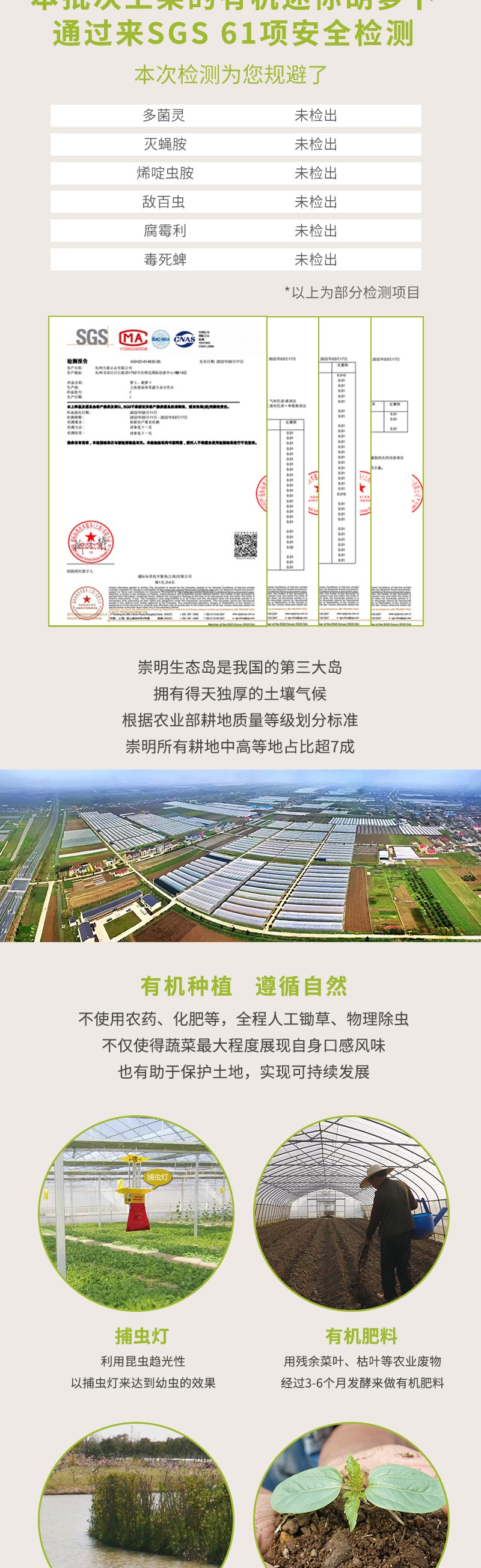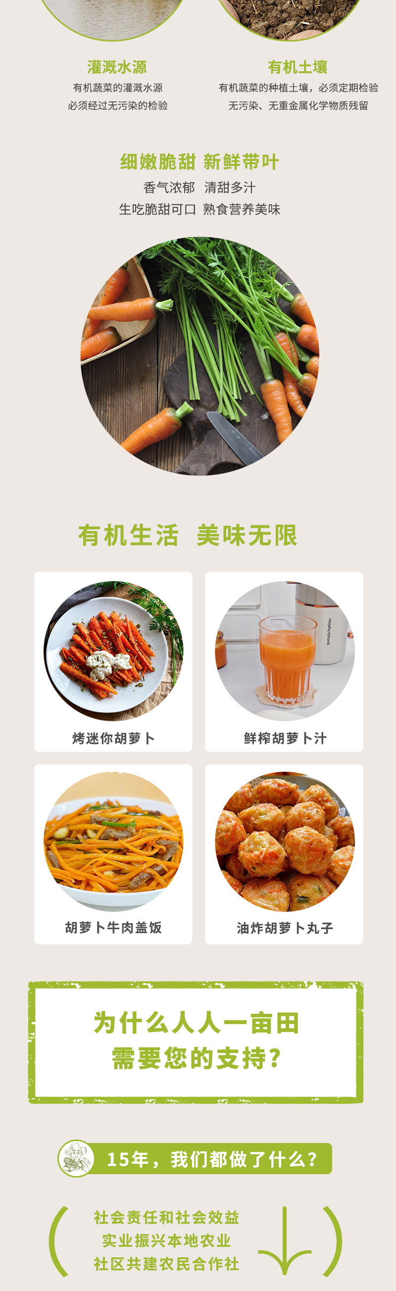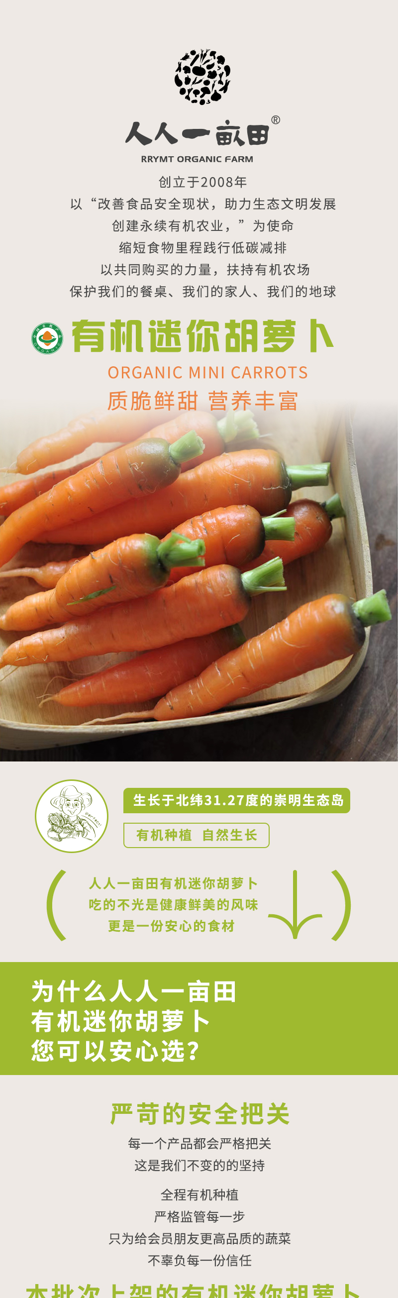 简介: 人人一亩田崇明农庄种植,严格检测,冷链配送,新鲜到家。 口感细腻,味甜可口,品质佳,适合鲜食、西餐料理。泥土PH7.6弱碱性,空气PM2.5华东地区常年最低,水质达到国家8类水标准,达到饮用级别;有机认证已经第七年的行业顶尖水准。