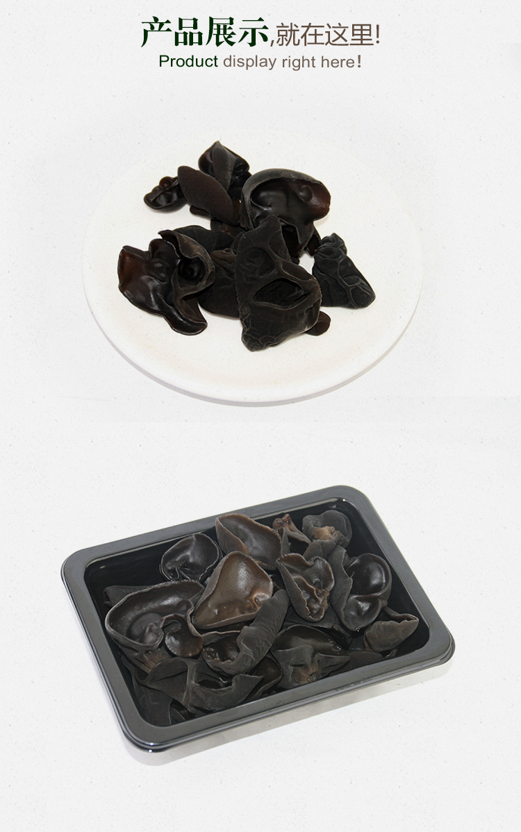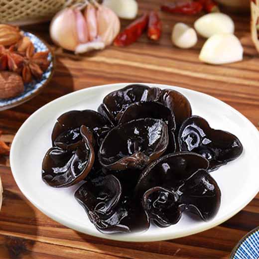 肥厚肉质、脆嫩爽口、色泽黑亮。
