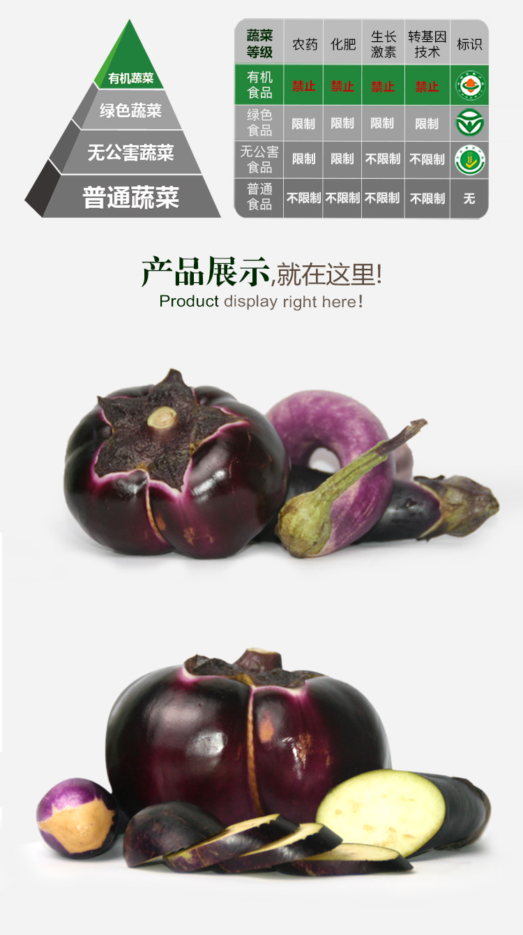 简介: 人人一亩田有机农庄多年来一直努力最大程度上杜绝农药、化肥、转基因种子、除草剂,种植蔬菜的过程更加符合环境保护,更多避免化学伤害。茄子原产亚洲热带,是夏季主要蔬菜之一,其食法多样,可腌制、煮、烧、蒸和焖等。