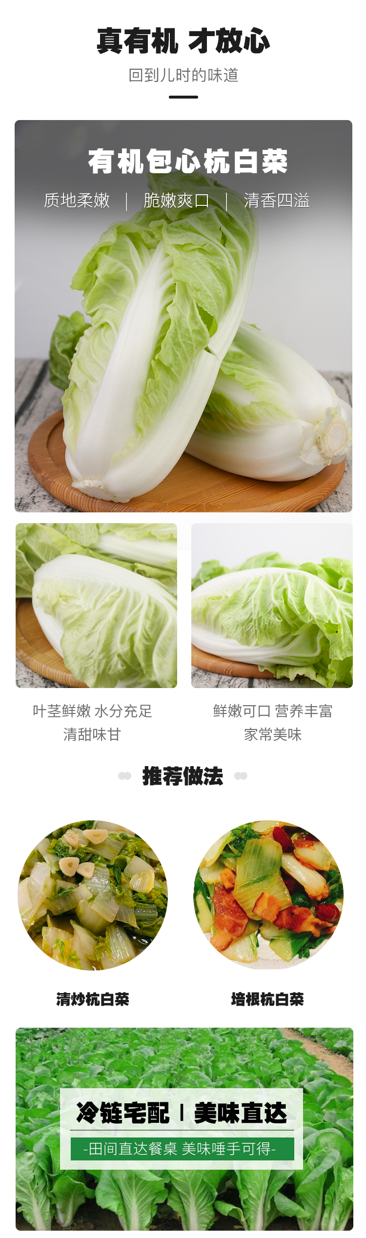 简介: 包心杭白菜,俗称“结球白菜”,属十字花科芸苔属的一年生或二年生草本植物。它的根系发达,长成肥大的肉质直根。原产于我国北方,引种南方,十九世纪传入日本,欧美各国。有包心杭白菜相伴,冬天不再寂寞。