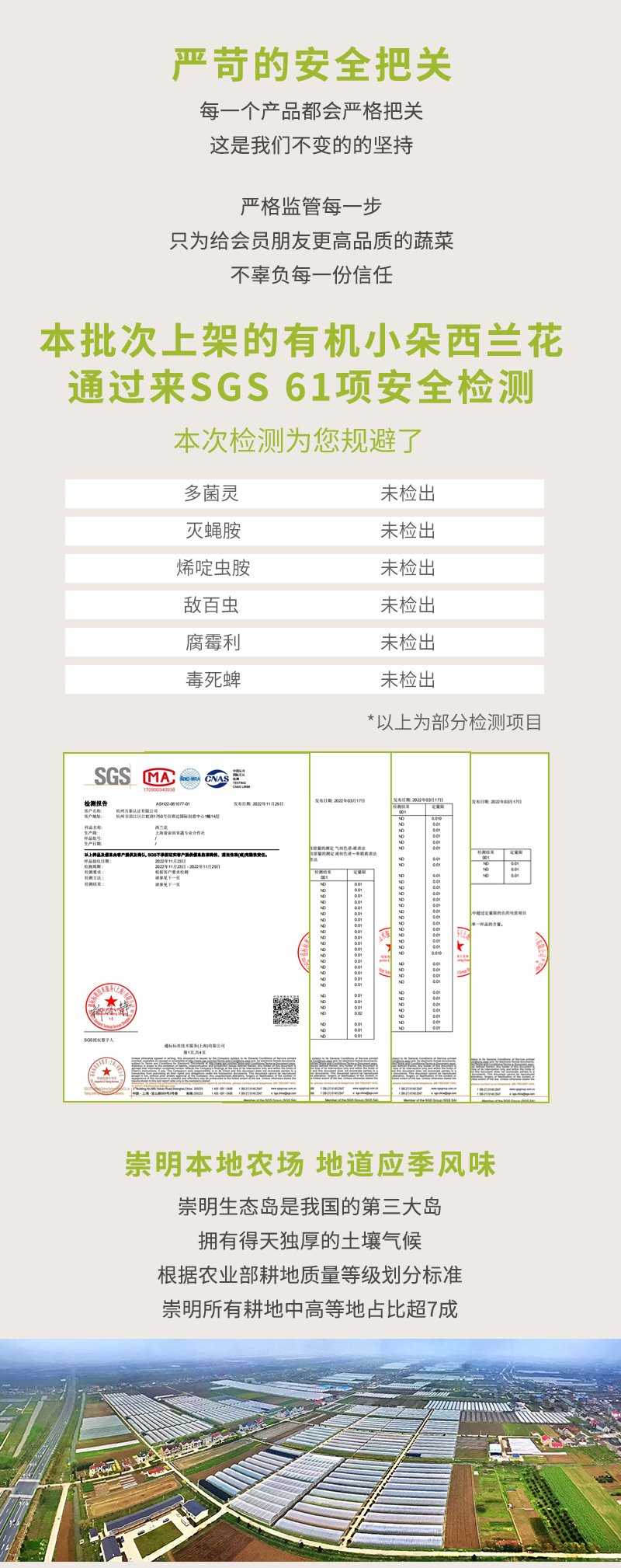 简介: 来自人人一亩田崇明农庄,专注种植,严格监测,冷链运输,快捷保鲜。西兰花富含大量的抗坏血酸,在肝脏的解毒能力方面有很好的增强效果,并能提高机体的免疫力功能。