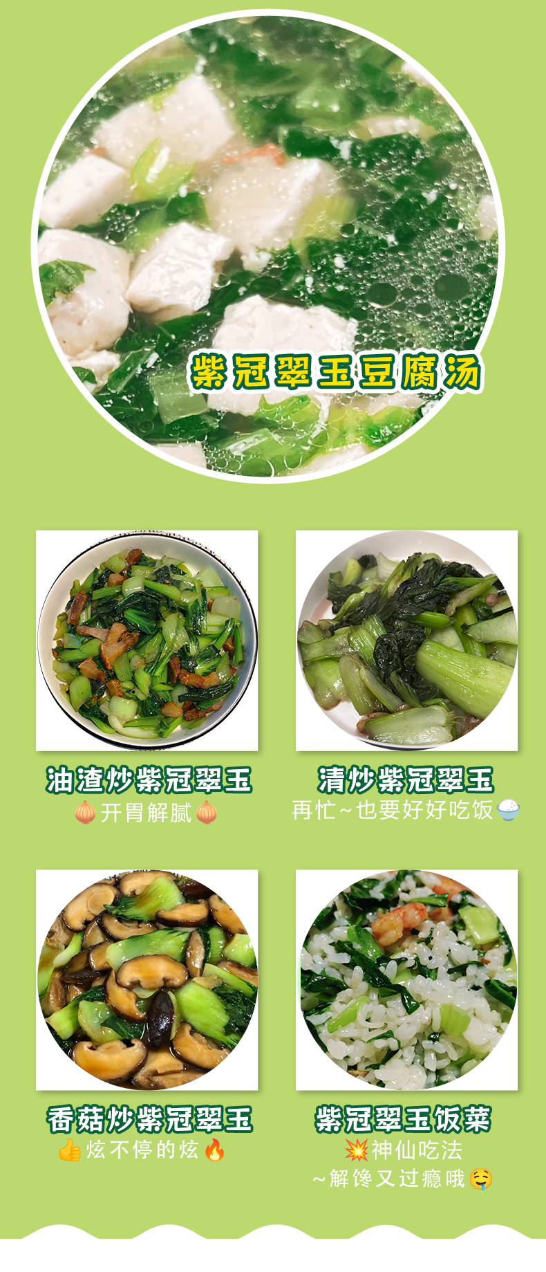 简介: 来自人人一亩田崇明农庄,专注种植,严格监测,冷链运输,快捷保鲜。 是披着紫色外衣的小白菜,可炒菜、煲汤等。
