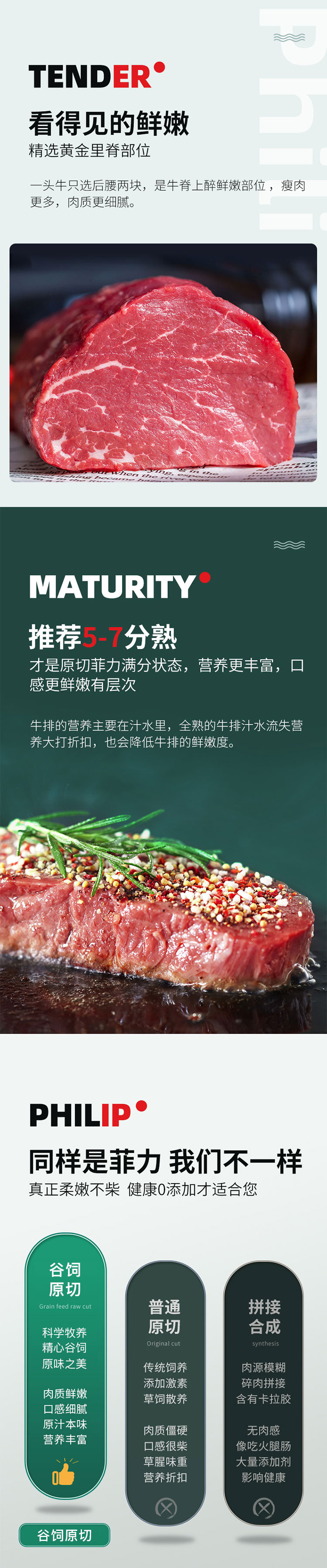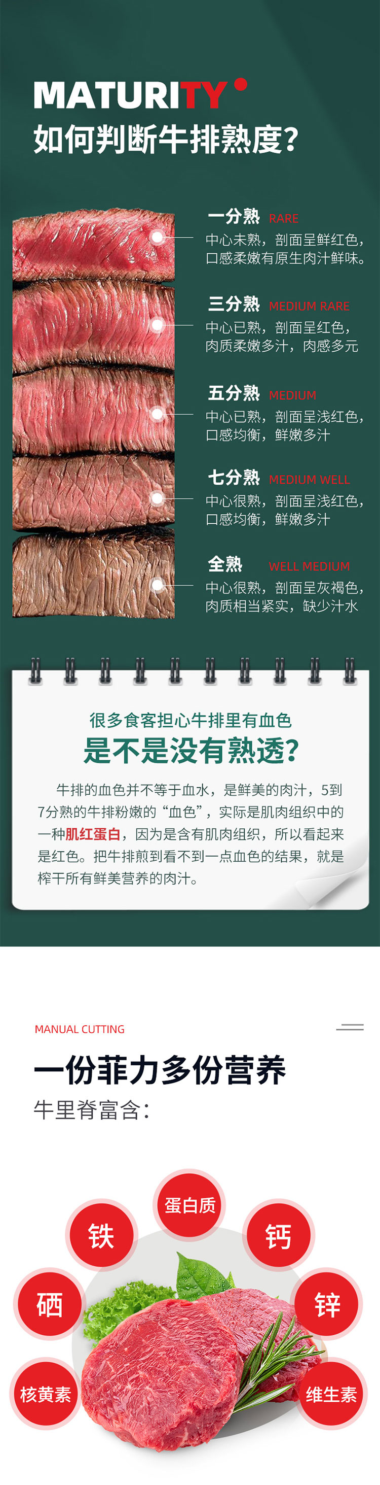 简介: 甄选原料,匠心制作,真空包装,冷链运输。精选谷饲菲力牛排取自牛腰内里脊部位,高蛋白低脂肪,几乎不含筋和脂肪,口感鲜甜细嫩,营养丰富。
