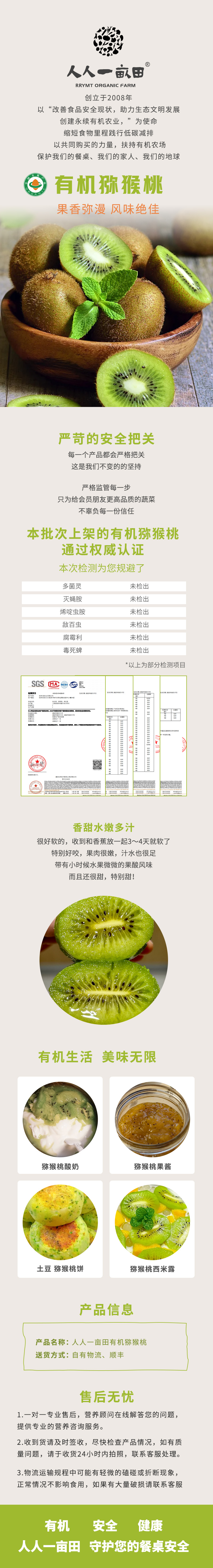 简介: 专注品质,匠心种植,产地现摘,新鲜到家。有机猕猴桃皮薄多汁,果肉晶莹剔透。枝头鲜采,适口的酸甜比,让你吃过就上瘾!