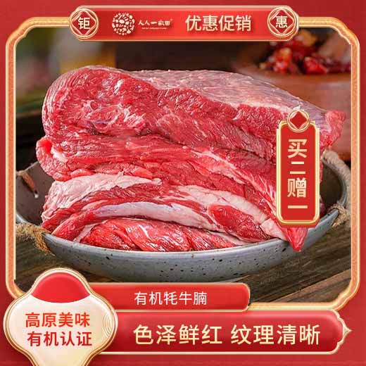 简介: 有机牦牛牛腩250g 买二送一 吃过有机牦牛牛腩,才懂什么叫“肉中黄金”,瘦而不柴,香而不膻,越炖越香,传统放牧,天然草饲,无激素无催肥,煎炒涮均可,烹饪时间较短。慢炖2-3小时,越炖越入味。周末炖一锅红烧牛腩,配碗米饭,幸福感直接拉满!汤品搭档:与胡萝卜、土豆、白萝卜、玉米同炖,营养均衡,一锅满足全家人。