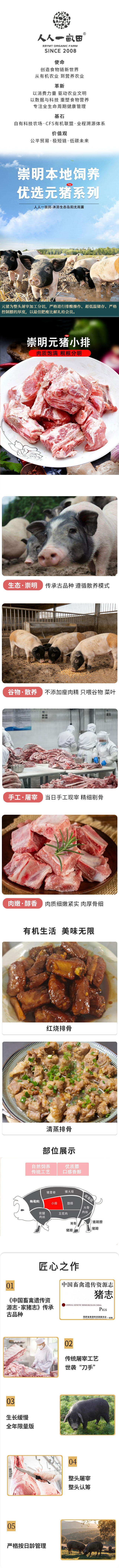 简介: 人人一亩田优选元猪系列,崇明本地饲养。由崇明最老“资格”生猪加工厂操作,分切称量严格控制,高标准好品质。