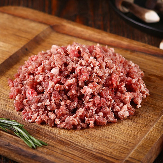 切剁精细,瘦多肥少;可制作肉馅、肉丸等食材。