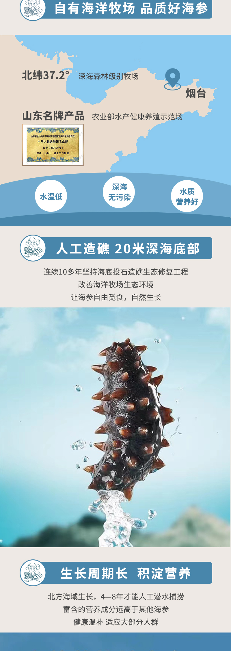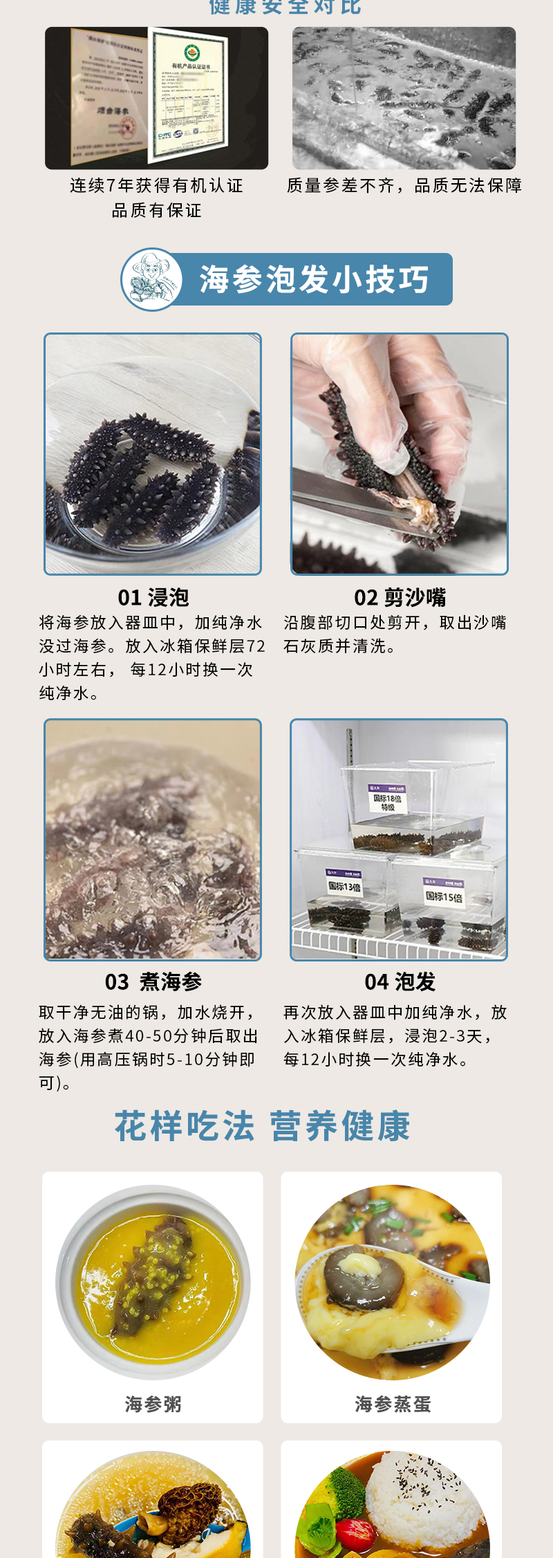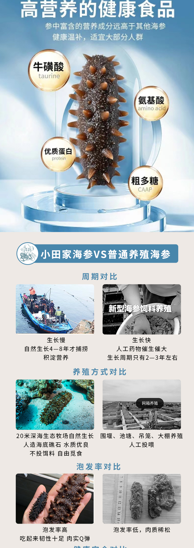 简介: 臻选产地直供,历时约30天,模拟海风自然风干,冷水浸泡12-17小时就能回软,30-60分钟煮透,泡发即食,也可熬汤,海参捞饭等。
