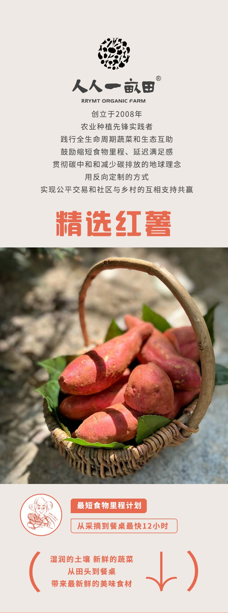 简介: 来自人人一亩田崇明农庄,专注种植,严格监测,冷链运输,快捷保鲜。较普通红薯,色泽更艳丽吸引人,口感极佳,其中的蛋白质氨基酸都是极易被人体消化和吸收。