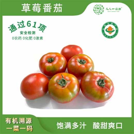 ,生产者:李氏夫妇;品种:CSF计划+HPC品种,农科院专用品种;特有的绿肩,酸甜适口,风味浓郁,由于天气连续下雨,气温较低。草莓西红柿成熟慢,采摘量少,下单后4-5天左右配送。实际配送约5斤2两,产品偶有破损,2两以内不受理理赔,敬请理解