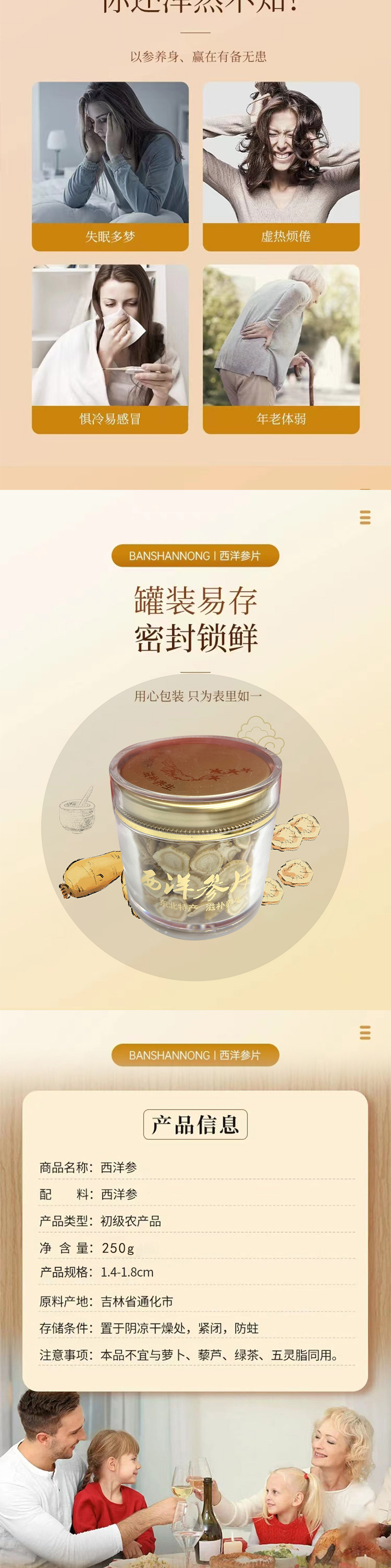 全家桶装滋补佳品西洋参AA级(1.4-1.8)250g直发-上海