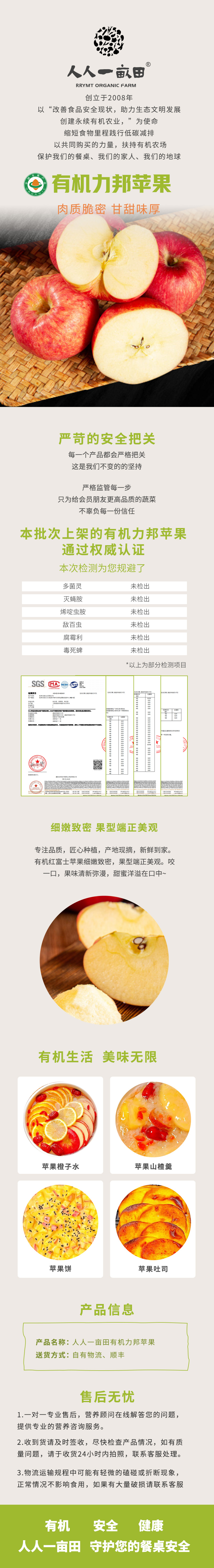 简介: 专注品质,匠心种植,产地现摘,新鲜到家。有机红富士苹果细嫩致密,果型端正美观。咬一口,果味清新弥漫,甜蜜洋溢在口中~