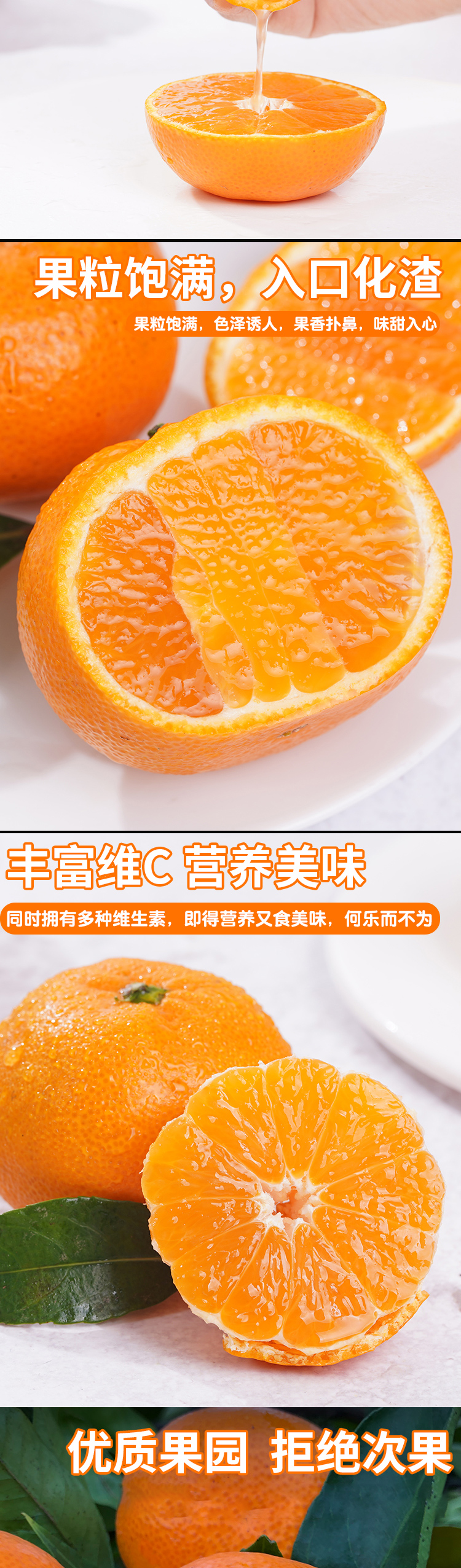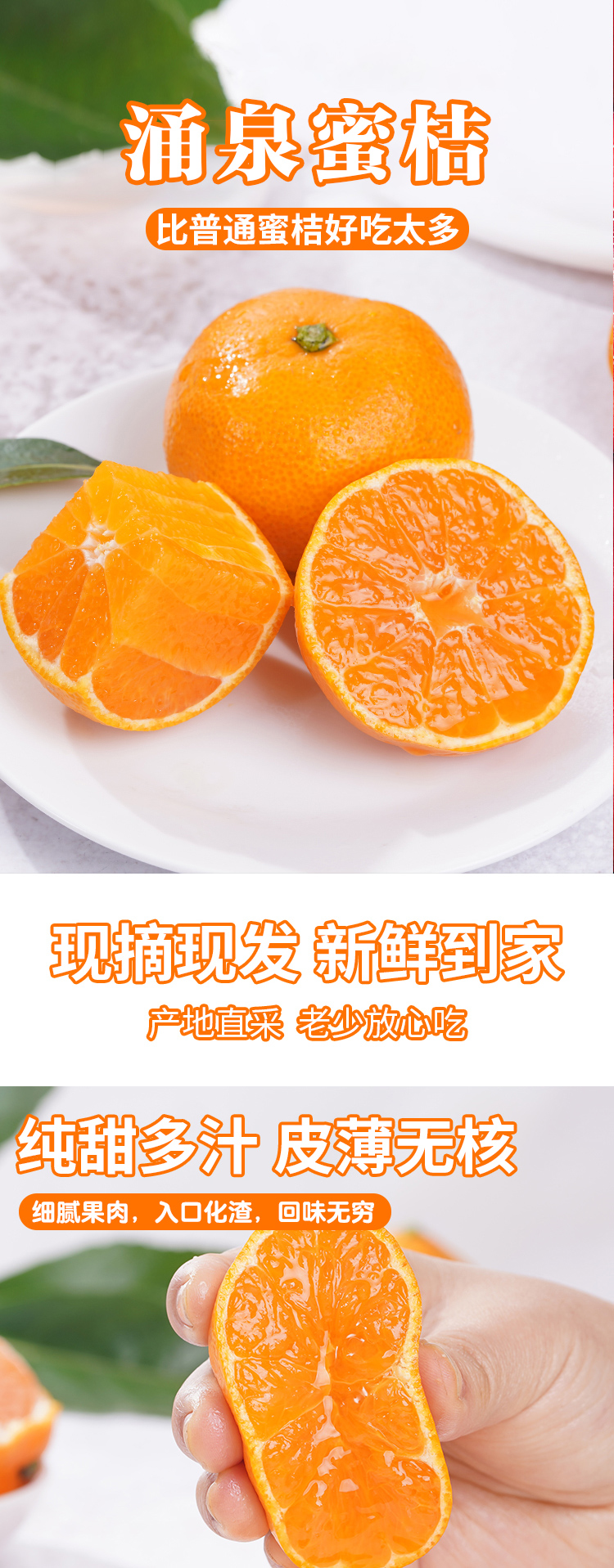 简介: 专注品质,匠心种植,产地现摘,新鲜到家。涌泉蜜桔果型整齐匀称,肉质细嫩无渣。平均糖分12度,黄金酸甜比,果汁充沛,风味怡人!