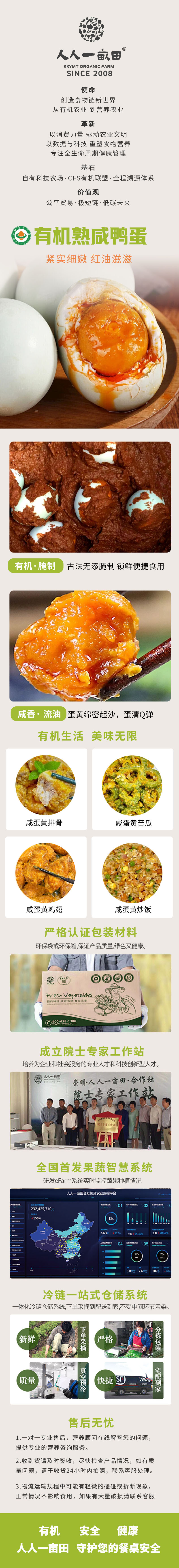 有机认证,无铅无防腐剂。蛋白紧实细嫩,蛋黄红油滋滋,一刀切下,油香瞬间迸发,咸度刚刚好,老人孩子都爱吃。