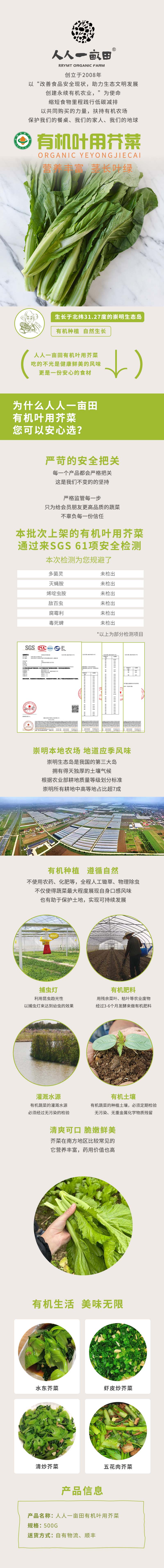 简介: 来自人人一亩田崇明农庄,种植过程严格监测,冷链运输,快捷保鲜。 叶用芥菜又名青菜、苦菜、辣菜、春菜等;可腌制、炒食、做汤、熬粥等;不宜生食或过多食用,婴幼儿不宜食用。