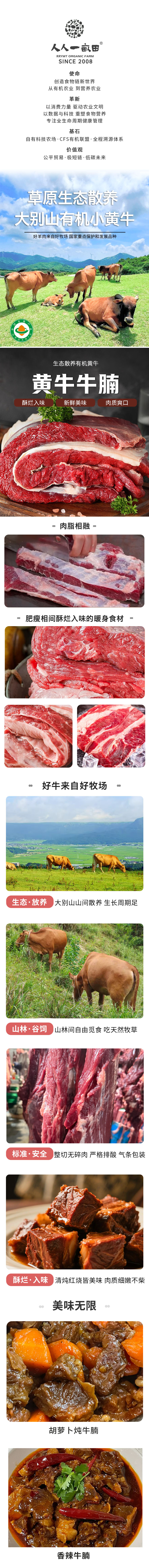 简介: 告别“速成”,选择“慢养”。国家有机认证,纯天然散养,不催肥、无激素。大别山小黄牛,用时间和自然,孕育出肉质细腻、肉香醇厚的健康好牛肉。
